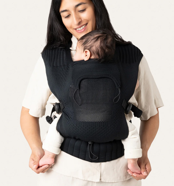 Elles ont identifié un problème clair : le marché offrait une dichotomie. D’un côté, des porte-bébés techniques, imposants, parfois peu esthétiques. De l’autre, des solutions plus minimalistes mais limitées en maintien, nécessitant un apprentissage complexe, ou peu adaptées à un usage urbain. Rares étaient les options qui conciliaient ergonomie, beauté et mobilité.