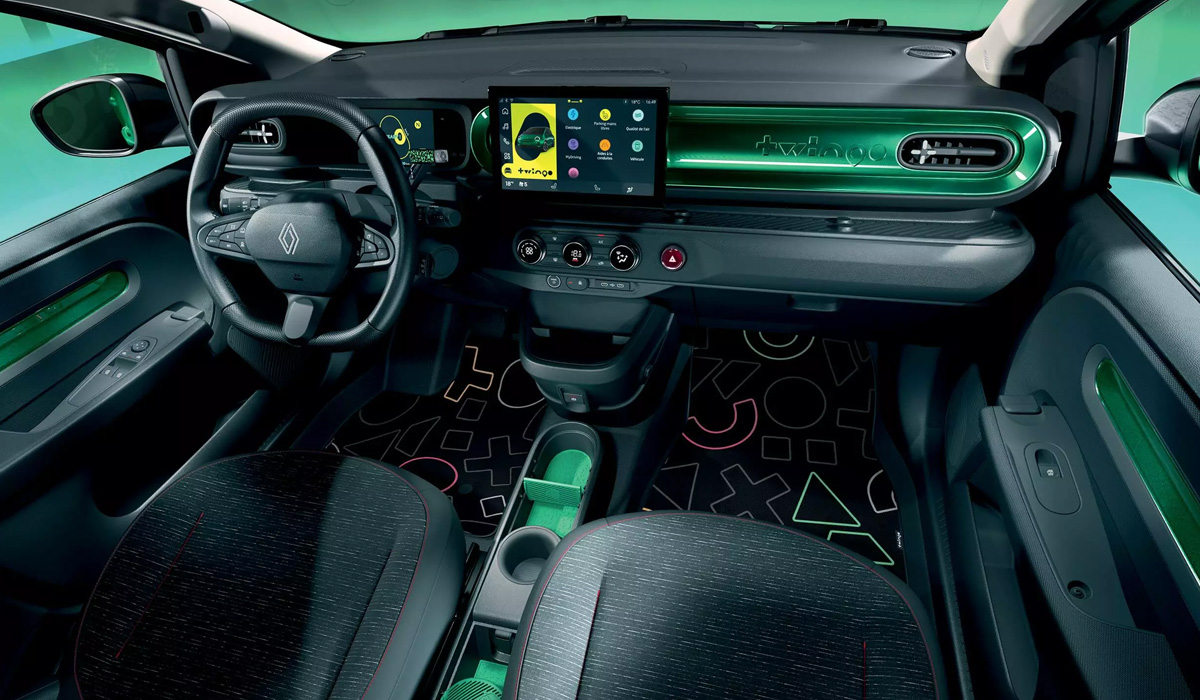 Les couleurs acidulés sont de la fête : le Jaune mango (couleur de base gratuite), le Noir Etoilé, le Gris Schiste et le Blanc Glacier, le Vert absolu, et le Rouge absolu procurent un effet de rafraîchissement et une jeunesse flamboyante à cette nouvelle twingo. Les peintures utilisées sont conformes aux règlementations environnementales européennes en vigueur (notamment REACH). Évidemment d’autres couleurs sont dans les tiroirs de la marque et apparaîtront au fil de l’eau.