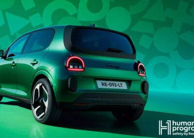 Les éléments aérodynamiques à l’arrière participent à l’efficience globale du véhicule et à l’optimisation du SCx (à partir de 0,656), contribuant à la maîtrise des consommations. Gain annoncé en conférence de presse : 20 millièmes en aéro, ce qui apporte 5 km d’autonomie.